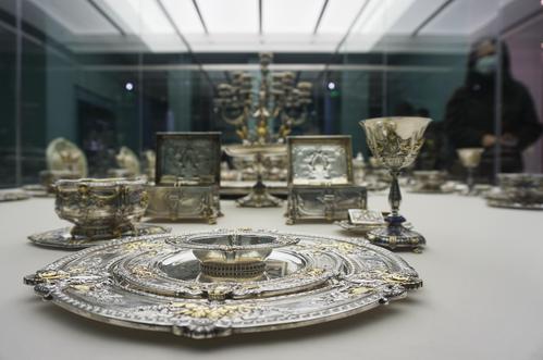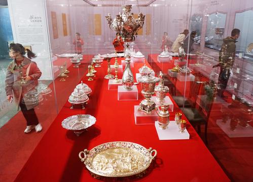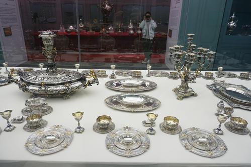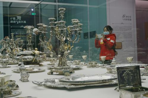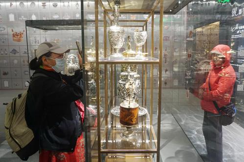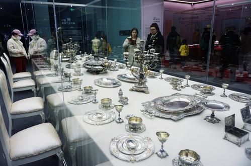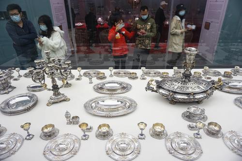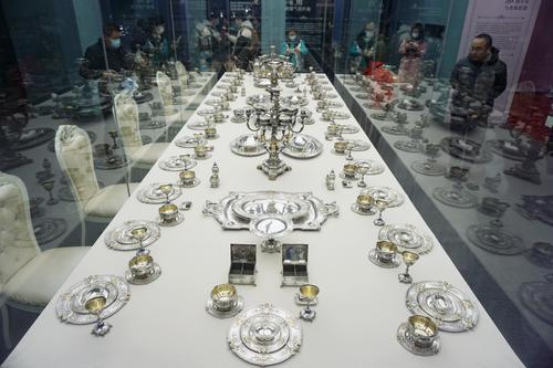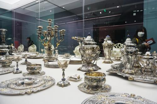 2023年3月18日,观众在“西方18-20世纪银器展”上观看各式精品银器。