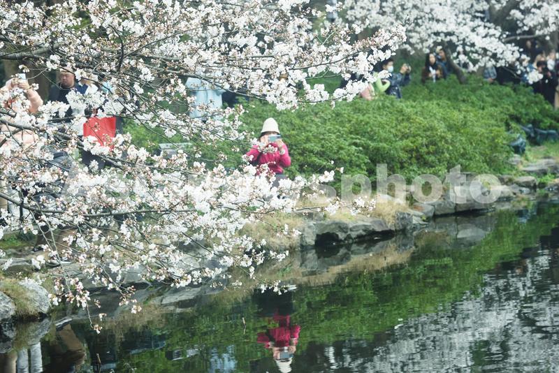 图片说明:2023年3月19日,游客观赏杭州西湖边盛开的樱花。