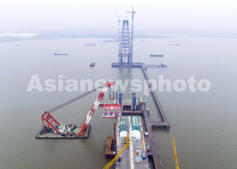 据悉,常泰长江大桥主航道桥全长2440米,采用主跨1176米公铁两用双层钢桁梁斜拉桥,是目前世界上在建的最大跨径公铁两用斜拉桥。主航道桥采用双主桁“N”形钢桁梁,桁高15.5米,桁中心间距35米,全桥共有91个大节段。