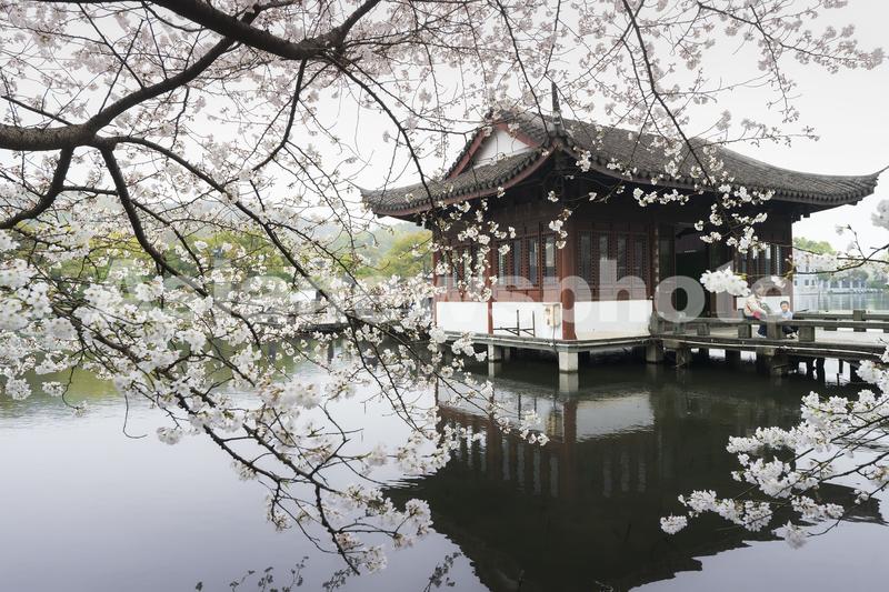 2023年3月20日,杭州西湖曲院风荷景区友好公园,盛开的樱花随风摇曳,吸引众多游客前来观赏。
