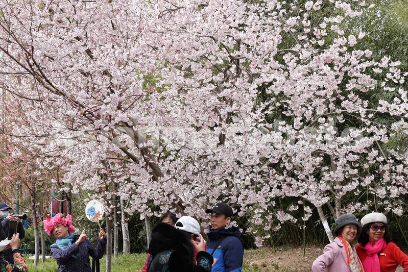 图片说明:3月23日,游客在玉渊潭公园赏樱拍照。