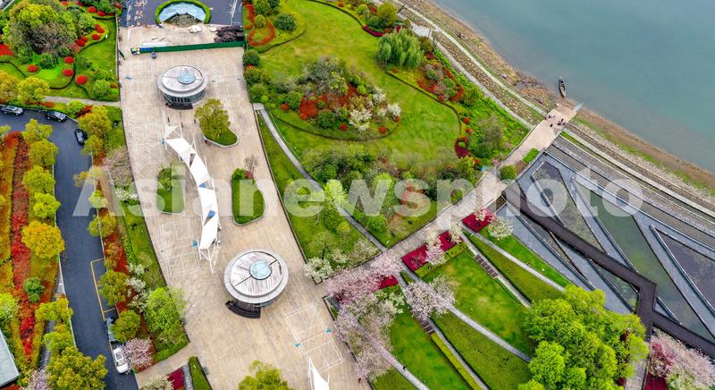 2023年3月23日,浙江省杭州市淳安县千岛湖珍珠广场樱花盛开,黛粉的花瓣点缀在枝头,繁花似锦,春意渐浓,成为踏青游园的好时节。