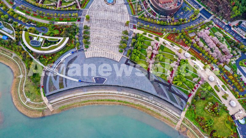 2023年3月23日,浙江省杭州市淳安县千岛湖珍珠广场樱花盛开,黛粉的花瓣点缀在枝头,繁花似锦,春意渐浓,成为踏青游园的好时节。