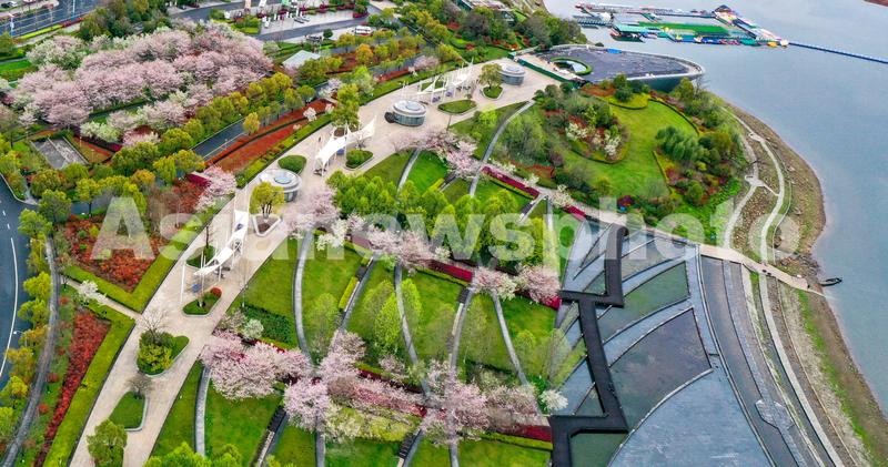 2023年3月23日,浙江省杭州市淳安县千岛湖珍珠广场樱花盛开,黛粉的花瓣点缀在枝头,繁花似锦,春意渐浓,成为踏青游园的好时节。