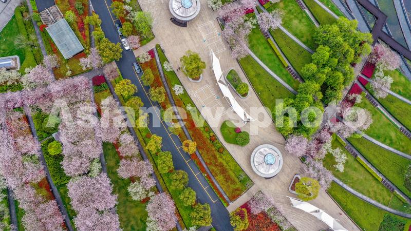 2023年3月23日,浙江省杭州市淳安县千岛湖珍珠广场樱花盛开,黛粉的花瓣点缀在枝头,繁花似锦,春意渐浓,成为踏青游园的好时节。