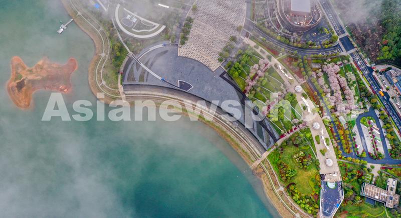 2023年3月23日,浙江省杭州市淳安县千岛湖珍珠广场樱花盛开,黛粉的花瓣点缀在枝头,繁花似锦,春意渐浓,成为踏青游园的好时节。