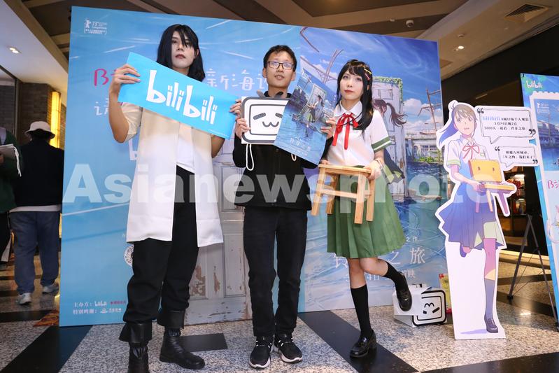 2023年3月24日,上海,哔哩哔哩弹幕网站(B站)举办《铃芽之旅》线下观影活动人气火爆,二次元动漫粉丝、新海诚影迷在电影院与男女主角的COSPLAY合影。