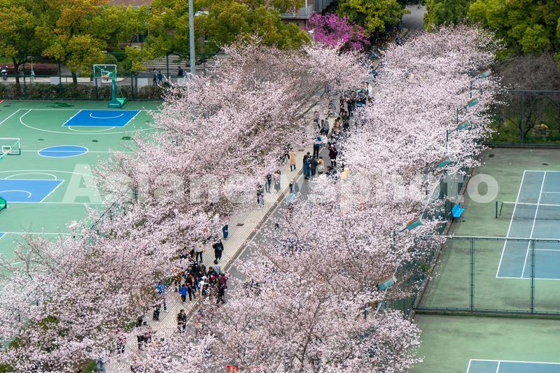 2023年3月25日,上海同济大学爱校路上的樱花盛开,美丽的风景吸引众多师生和游客赏花。