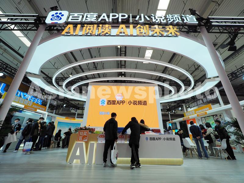 图片说明:2023年3月24日,北京亦创国际会展中心,“网络文学新时代十年主题成果展”上观众在百度APP展位参观。