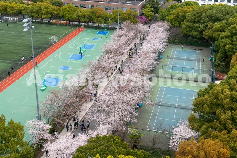 2023年3月25日,上海同济大学爱校路上的樱花盛开,美丽的风景吸引众多师生和游客赏花。