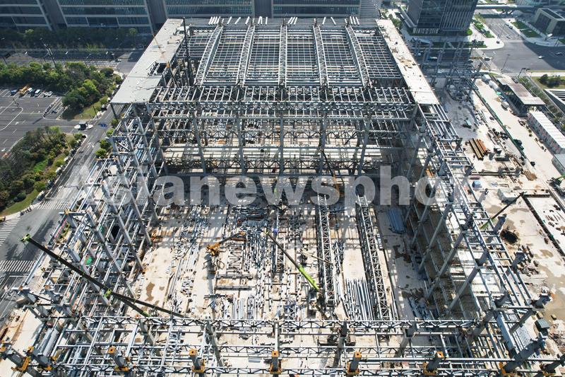 图片说明:2023年3月26日, 从空中俯瞰杭州国际博览中心二期施工现场。