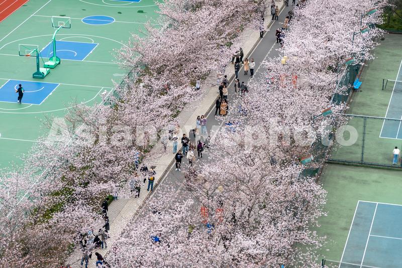 2023年3月25日,上海同济大学爱校路上的樱花盛开,美丽的风景吸引众多师生和游客赏花。
