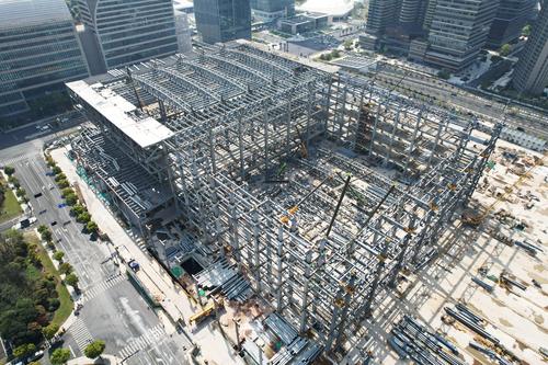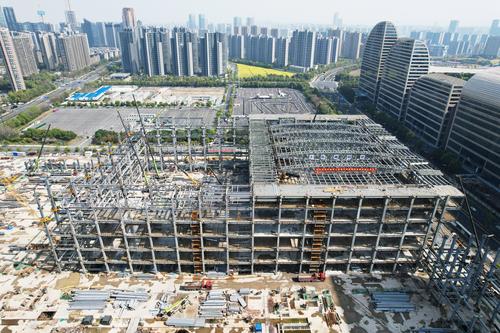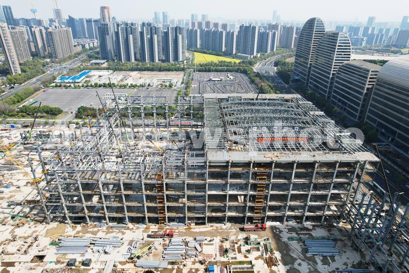 图片说明:2023年3月26日, 从空中俯瞰杭州国际博览中心二期施工现场。