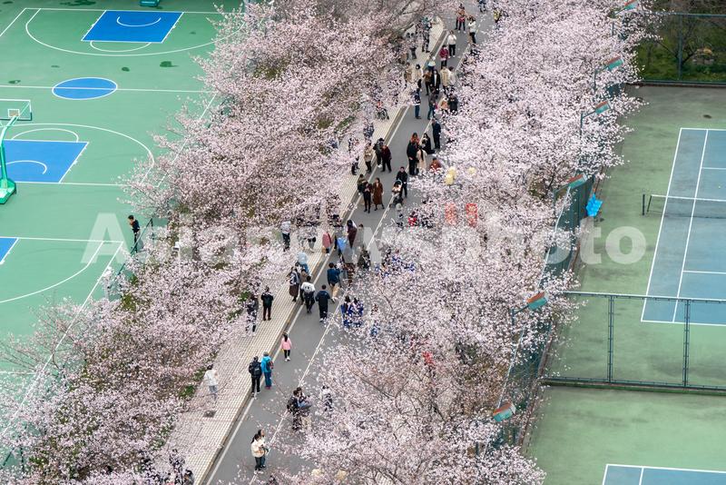 2023年3月25日,上海同济大学爱校路上的樱花盛开,美丽的风景吸引众多师生和游客赏花。