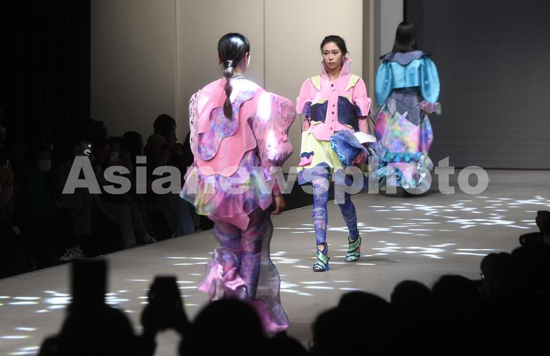 图片说明:2023年3月27日,一场以“爱+”为主题的时装秀在武汉纺织大学南湖校区服装表演厅上演