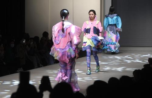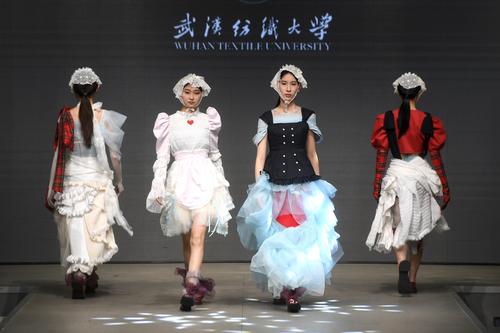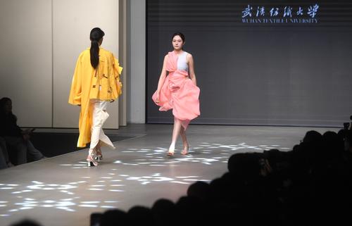 图片说明:2023年3月27日,一场以“爱+”为主题的时装秀在武汉纺织大学南湖校区服装表演厅上演