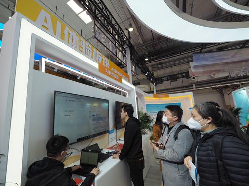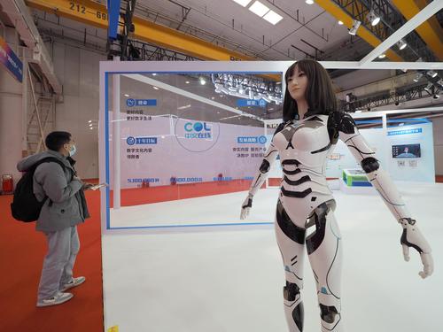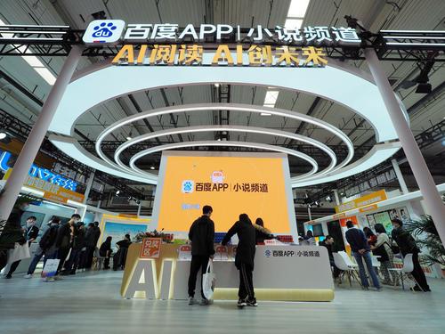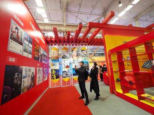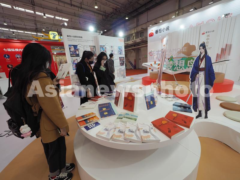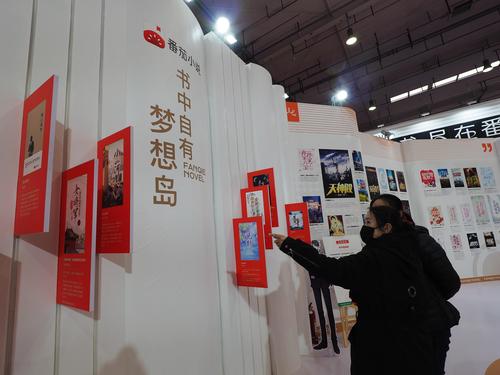 图片说明:2023年3月24日,北京亦创国际会展中心,观众在“网络文学新时代十年主题成果展”上参观。