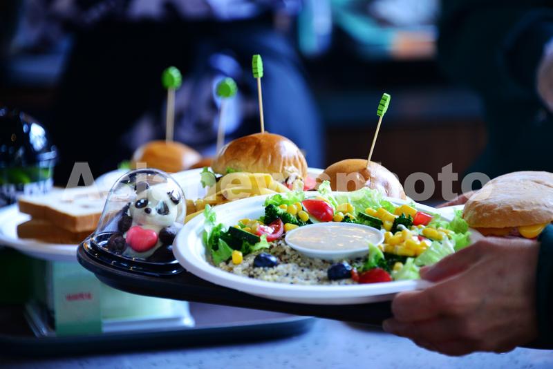 图片说明:3月28日,年轻人在北京动物园大熊猫馆二楼的熊猫咖啡店就餐。