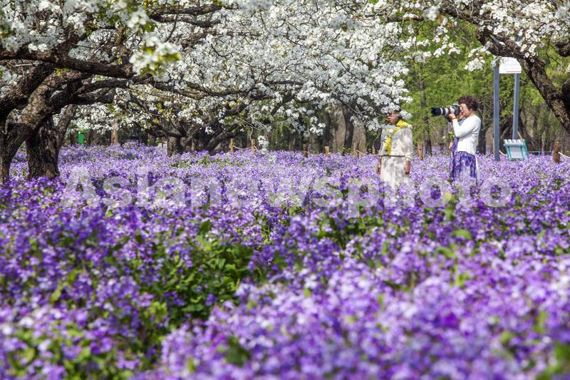 图片说明:2023年3月28日,游人在宿迁市三台山国家森林公园的梨兰会景区赏花拍照。