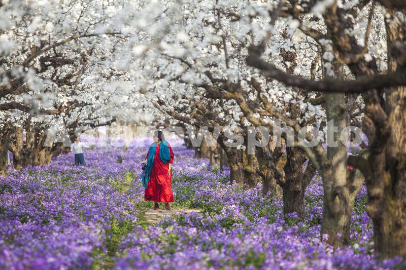 图片说明:2023年3月27日,游人在宿迁市三台山国家森林公园的梨兰会景区赏花。