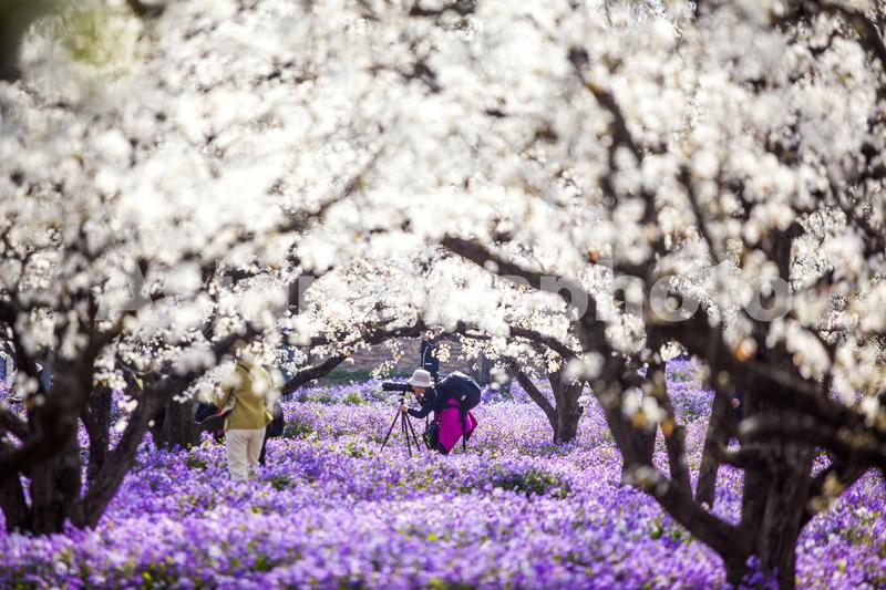 图片说明:2023年3月27日,游人在宿迁市三台山国家森林公园的梨兰会景区赏花拍照。