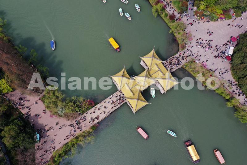 图片说明:2023年4月1日,游客在扬州瘦西湖景区赏景游玩。