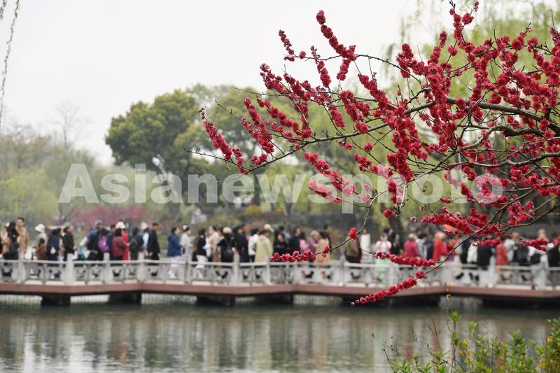 图片说明:2023年4月1日,游客在扬州瘦西湖景区赏景游玩。