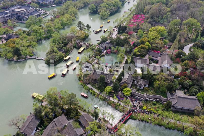 图片说明:2023年4月1日,游客在扬州瘦西湖景区赏景游玩。