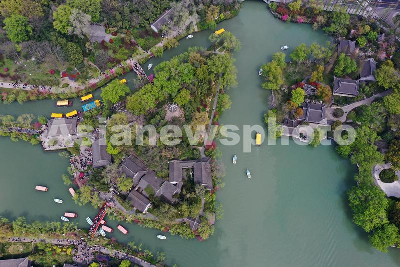 图片说明:2023年4月1日,游客在扬州瘦西湖景区赏景游玩。
