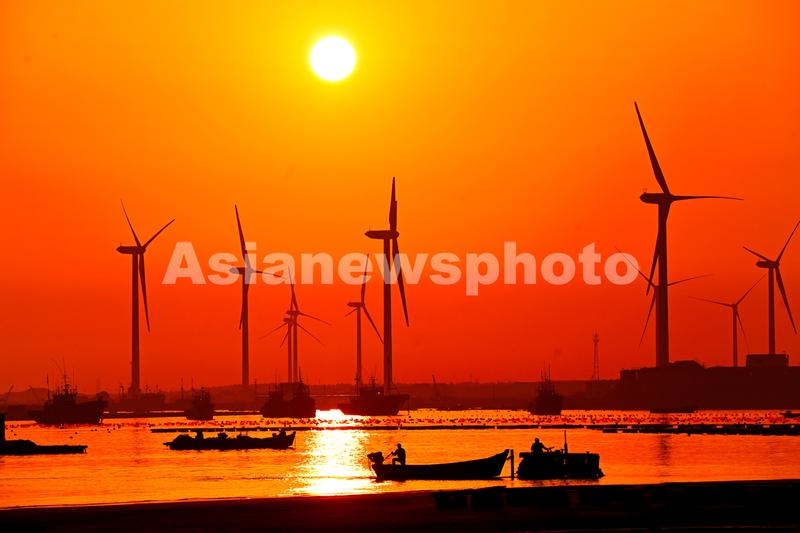 2023年4月2日,春日里的山东荣成桑沟湾海洋牧场,养殖网箱与风车交相互映,渔民迎着朝阳驾船出海,海上生产到处一派生机盎然的繁忙景象。