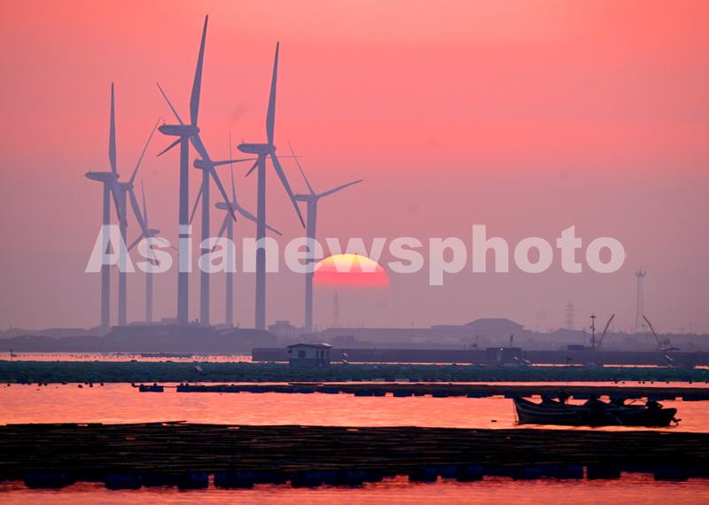 2023年4月2日,春日里的山东荣成桑沟湾海洋牧场,养殖网箱与风车交相互映,渔民迎着朝阳驾船出海,海上生产到处一派生机盎然的繁忙景象。