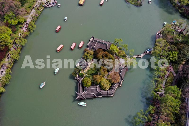图片说明:2023年4月1日,游客在扬州瘦西湖景区赏景游玩。