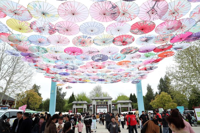 2023年4月5日,安徽省蒙城县庄子祠景区,游人在踏青游玩,感悟道家文化的魅力。