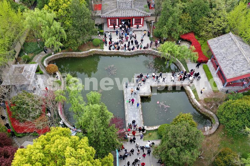 4月5日,安徽省蒙城县庄子祠景区,游人在踏青游玩,感悟道家文化的魅力。