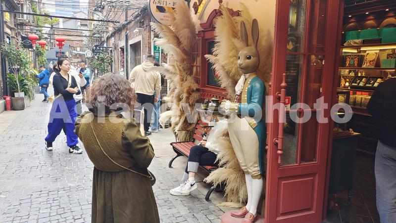 2023年4月5日,上海,海派文化旅游景点、网红石库门里弄田子坊吸引众多时尚青年游客打卡拍照。