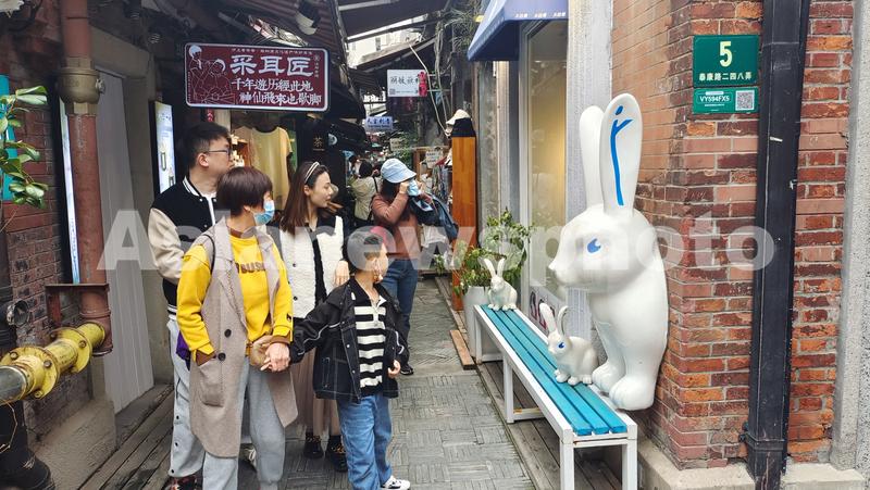 2023年4月5日,上海,著名海派文化旅游景点、网红石库门里弄田子坊吸引中外游客。这里从马路文创集市到艺术家的聚集地再到复古文旅消费地标,是文艺青年潮流打卡地,在充满烟火气的历史遗存建筑里享受都市“慢生活”。