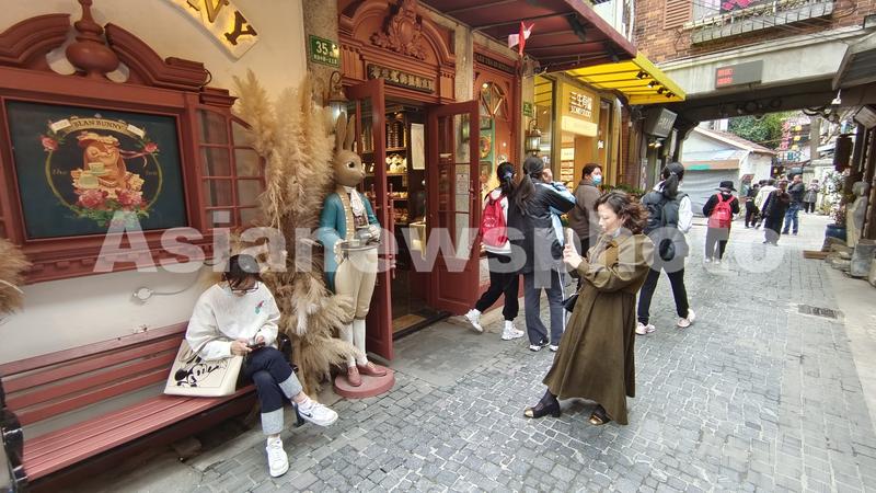 2023年4月5日,上海,海派文化旅游景点、网红石库门里弄田子坊吸引众多时尚青年游客打卡拍照。