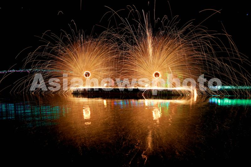 2023年4月8日,民间艺人在四川省泸州市纳溪区大渡口镇花田酒地景区现场表演“打铁花”。
