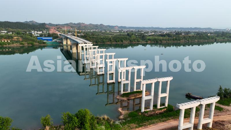 2023年4月9日,在四川省南充市顺庆区搬罾街道附近的嘉陵江畔,南充过境高速公路项目(东北段)的嘉陵江特大桥工程建设正酣,横跨嘉陵江两岸的大桥如长虹卧波,气势恢宏磅礴,该工程已经完成超过90%的工程量。