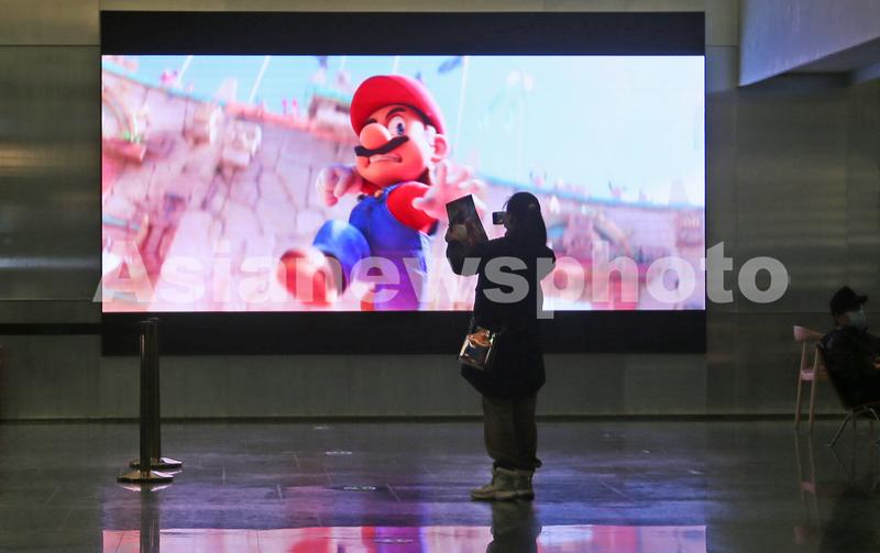 图片说明:2023年3月16日,上海电影院中,任天堂公司和环球影业合作的经典游戏IP改编动画《超级马里奥兄弟大电影》宣传片吸引中国影迷关注。