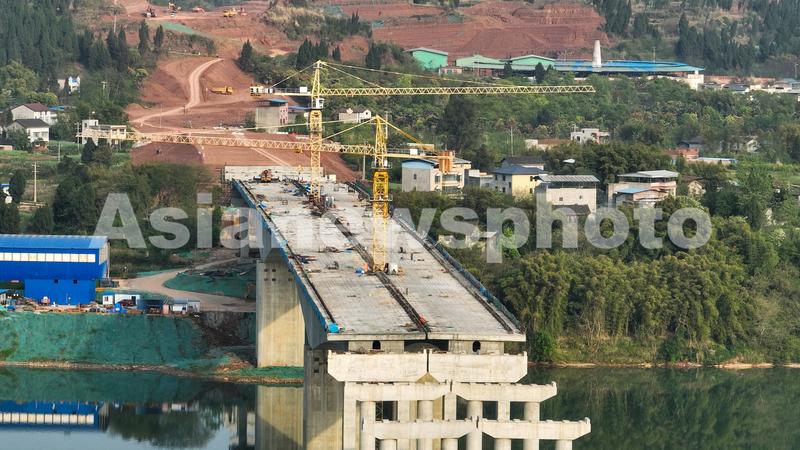 2023年4月9日,在四川省南充市顺庆区搬罾街道附近的嘉陵江畔,南充过境高速公路项目(东北段)的嘉陵江特大桥工程建设正酣,横跨嘉陵江两岸的大桥如长虹卧波,气势恢宏磅礴,该工程已经完成超过90%的工程量。