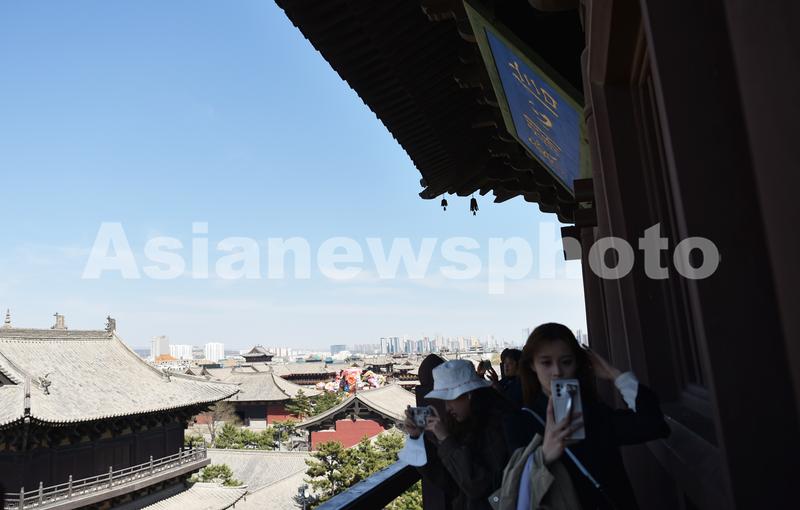 春日华北,天气晴好。在山西省大同市平城区大同古城景区,不少游客来到华严寺古建筑群,欣赏精美传统建筑,感受古建艺术之美。