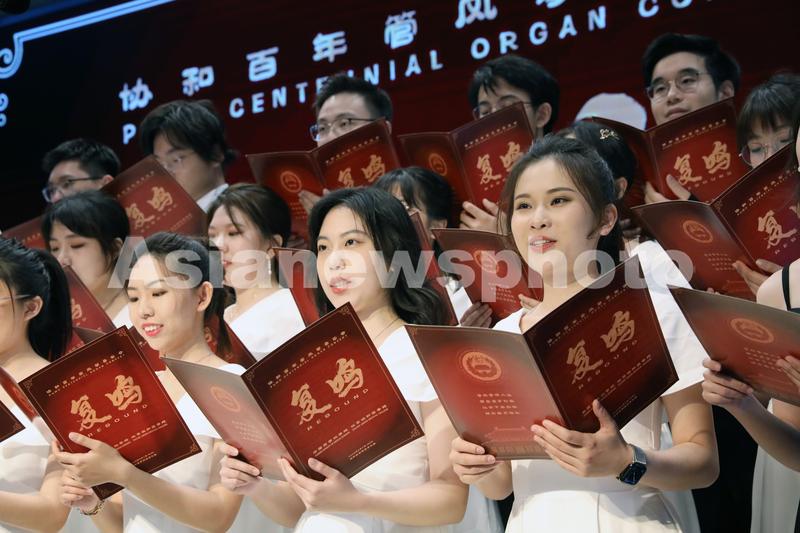 4月7日,北京协和医学院雨燕合唱团在管风琴伴奏下演唱校歌《协和颂》。