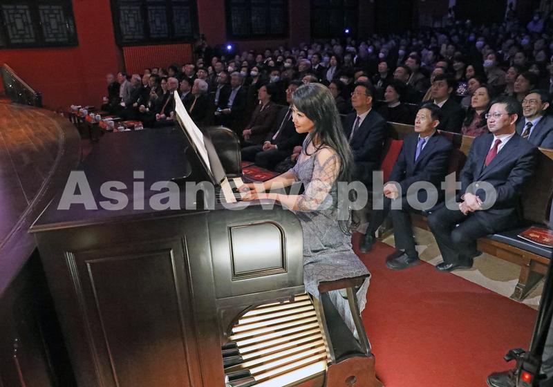 4月7日晚,中央音乐学院教授、协和医学院管风琴音乐艺术总监沈媛在北京协和医学院壹号礼堂演奏管风琴。