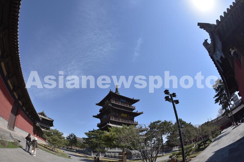 2023年4月10日,游客在山西大同古城华严寺景区游玩欣赏古建之美。