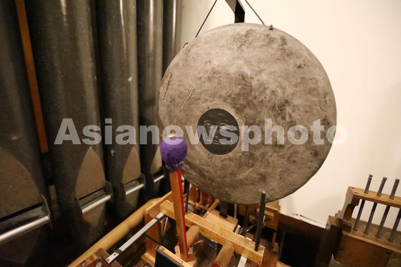4月7日晚,在北京协和医学院壹号礼堂,拍摄管风琴琴房的锣。