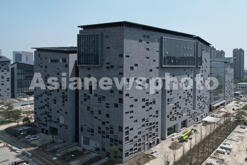 图片说明:2023年4月13日,从空中俯瞰位于杭州西湖区钱塘江畔的浙江省博物馆新馆。