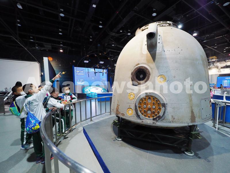 2023年4月12日,是世界航天日,小朋友在中国科技馆内参观体验、学习航天知识。