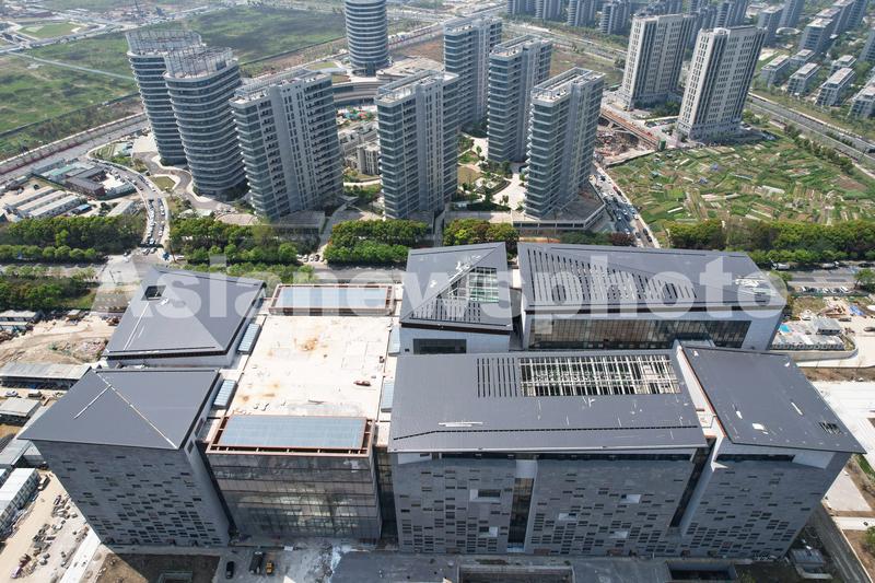 图片说明:2023年4月13日,从空中俯瞰位于杭州西湖区钱塘江畔的浙江省博物馆新馆。