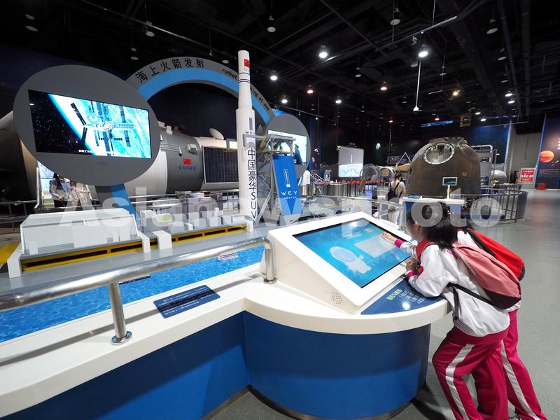 2023年4月12日,是世界航天日,小朋友在中国科技馆内参观体验、学习航天知识。